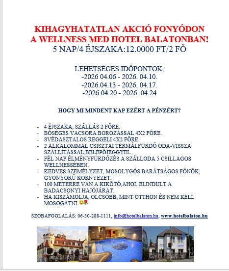 (Our wellness is beautiful, our restaurant is delicious. A wide variety of beer, wine, brandy, soft drinks. The rooms are well equipped and clean. All rooms are air-conditioned and equipped with a safe. The Fonyód market is famous. We provide a good atmosphere, a nice environment, a comfortable rest, and a little fattening for everyone. We strive to have you as a returning guest!.